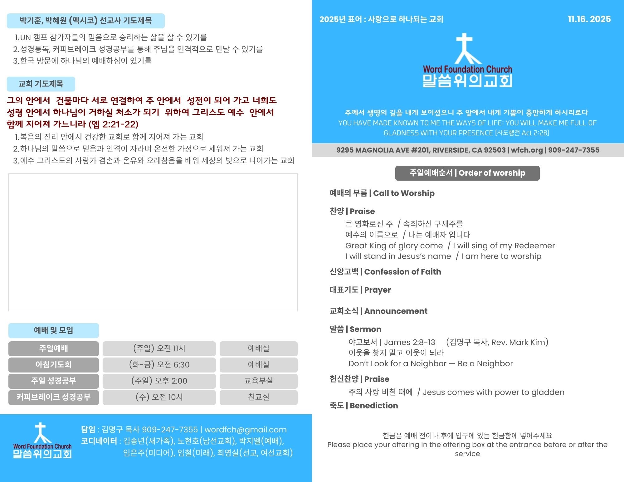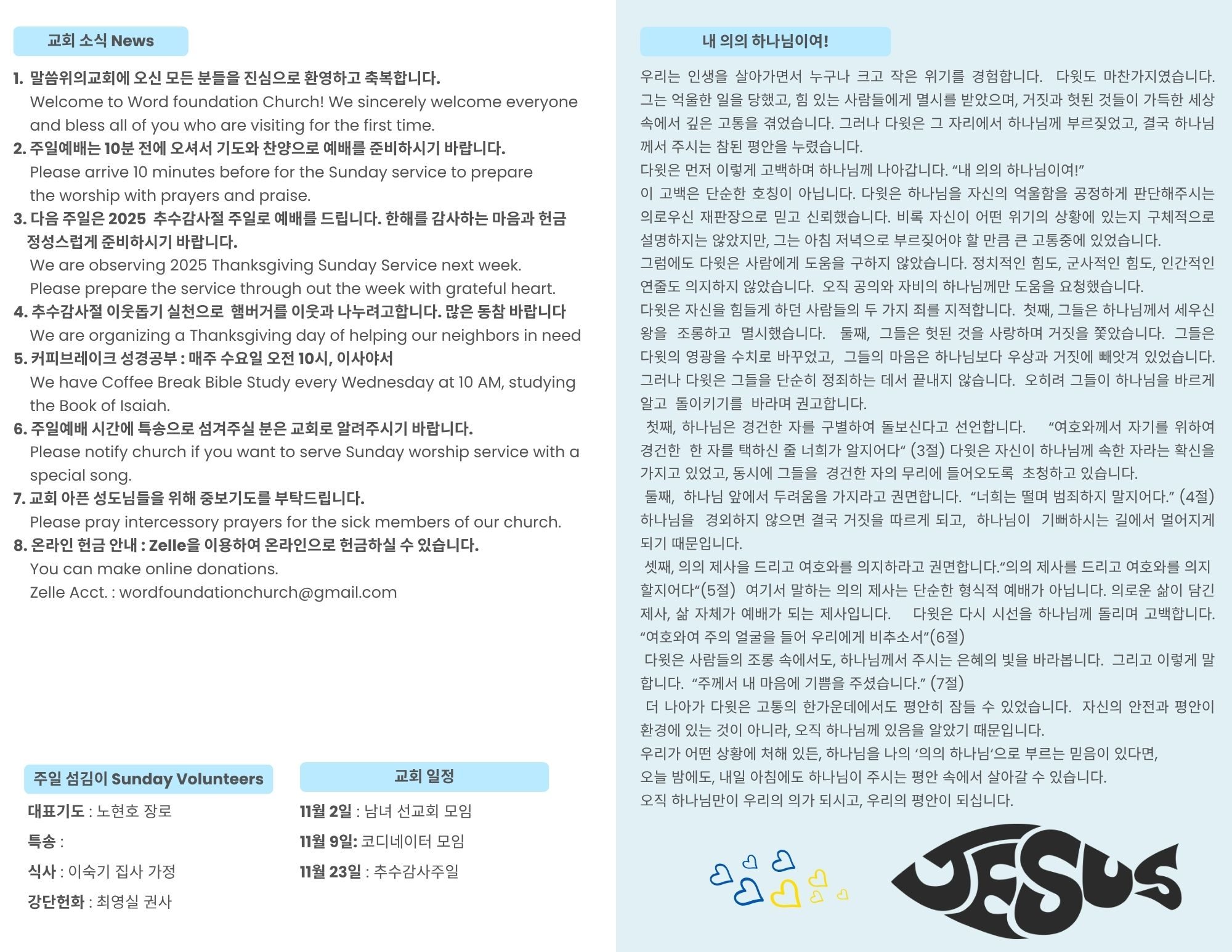 Full 1교 회 주 보 2025년 11월 16일 주보 Author Admin Date 2025-11-16 10:11 Views 12 Like 0 Unlike 0 Print « 2025년 11월 9일 주보 2025년 11월 23일 주보 » List Reply Powered by KBoard